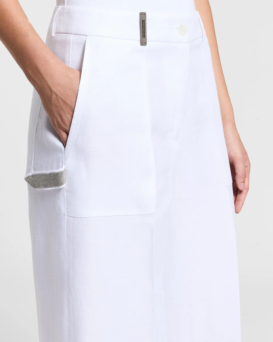 These pure linen gabardine carpenter trousers channel a functional aesthetic with balance and poise.