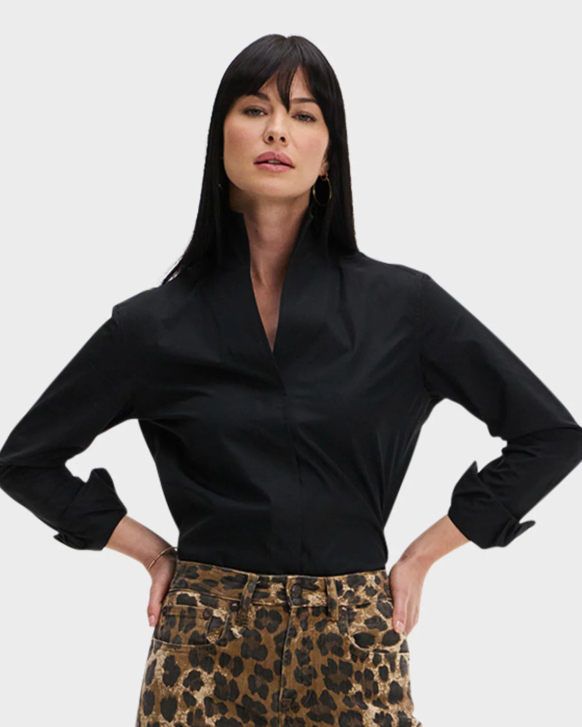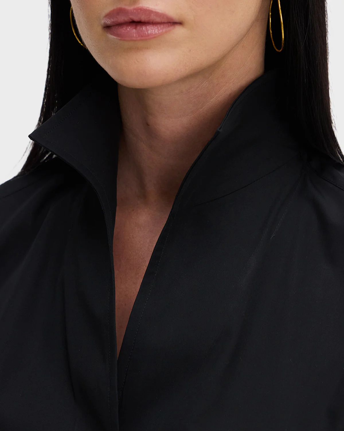 The Signature Shirt is fashioned with Sarah Alexandra's innovative and fully shapeable one-piece collar for dramatic styling. Pop it high, create an alluring angle, or lay it flat—just follow your mood. The concealed front placket hides ingenious fish-eye buttons for a seamless appearance. Chamfer cuffs add extra elegance.