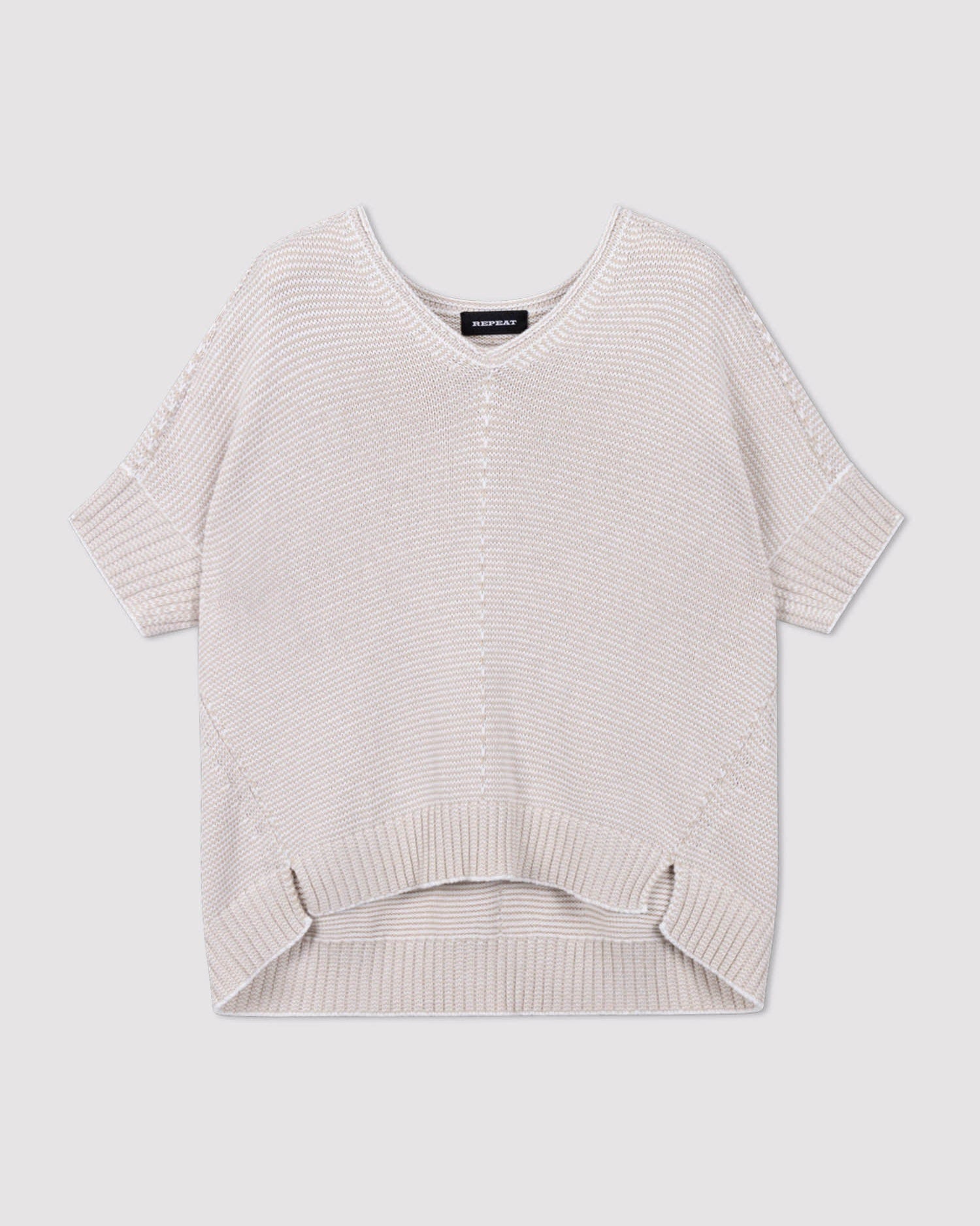 V-Neck Cotton Knit Poncho in Natural
